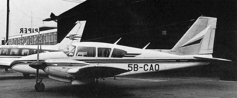 Регистрационный номер: 5B-CAO Aviation Agencies' Aztec 5B-CAO seen on a visit to Kidlington.