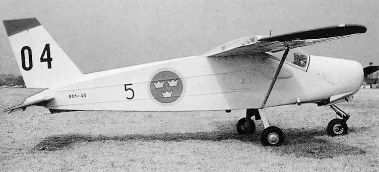 C/n 45 shown in full Flygvapnet colours, white overall with dayglo tips and black letters. "801-45" gives the Fv type designation and c/n, "5" is the unit representing F5 at Ljungbyhed and "04" is the aircraft code number.