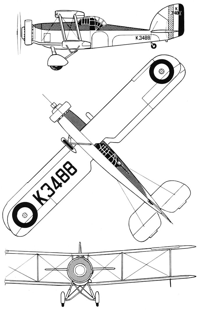 Регистрационный номер: K3488, G-ACBR The prototype Wallace K3488 during Service trials. Note the camera gun on top wing and windshield on Scarff-ring