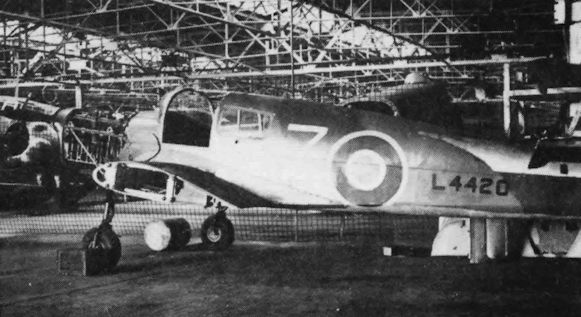 Регистрационный номер: L4420 Mentor L4420 is apparently coded "7" as it sits in a hangar but where? There is an Anson in the background.