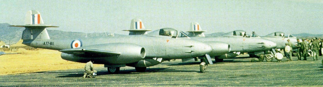 Регистрационный номер: A77-811 No 77 Sqn of the Royal Australian Air Force was deployed to Korea in July 1950, and was originally equipped with Mustangs, converting to Meteor F.8s in May 1951. By the end of the conflict, No 77 Sqn had flown 4,836 missions, and had racked up a score sheet of three MiG-15 kills and three prop-driven aircraft, for the loss of 42 pilots.