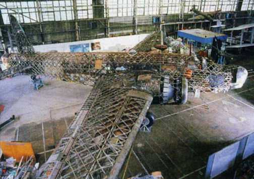 Регистрационный номер: N2980 [6] By May 1994 all the various parts had been fitted together, and the Wimpy was awaiting fabric-covering on the roof and rear sections.