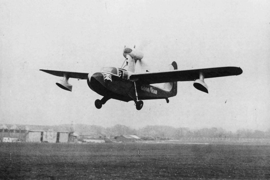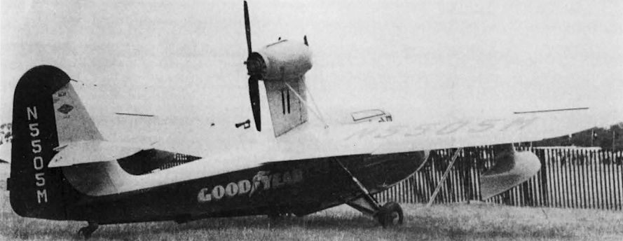 The Goodyear GA-1 (145 hp six-cylinder Franklin 6A4-145-A3) in its first form with bulges on the sides to contain the retracted wheels, as seen in "The Aeroplane Spotter"
