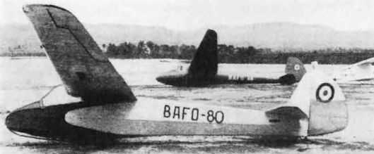 Регистрационный номер: VS201 [2], LF-VO [2] Coming in to land with spoilers out is the Royal Navy's VS201, a DFS Meise acquired from Germany. The Meise was designed for the intended 1940 Olympics and it bears the name Olympia on the nose, this name being adopted by Elliots of Newbury for the British-built version.