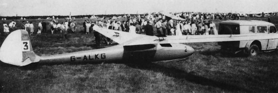 Регистрационный номер: G-ALKG, BGA433 DFS Weihe BGA.433/G-ALKG of Philip Wills at a contest at Great Hucklow, Derbyshire in July 1951. This was one of two Weihes tested at Farnborough and was then rebuilt by Slingsbys.