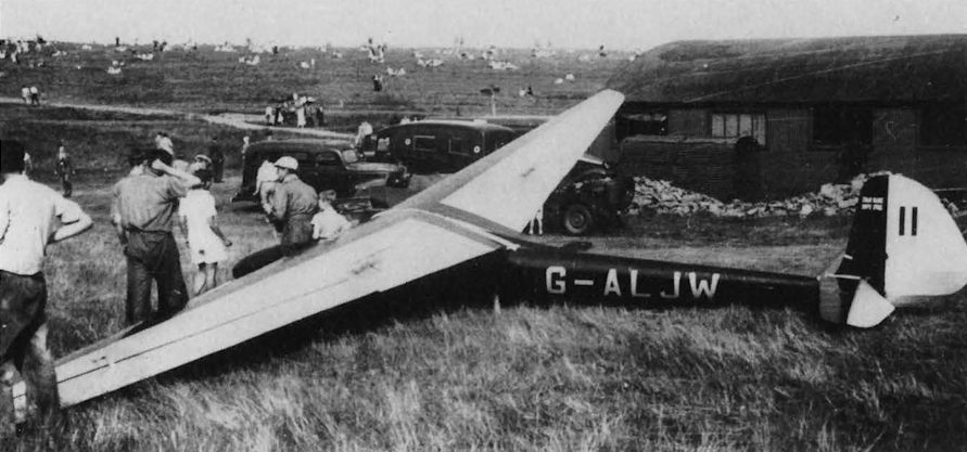 Регистрационный номер: G-ALJW, BGA448 Second of the Farnborough DFS Weihes was BGA.448/G-ALJW seen with competition number 11 at Great Hucklow in July 1951.