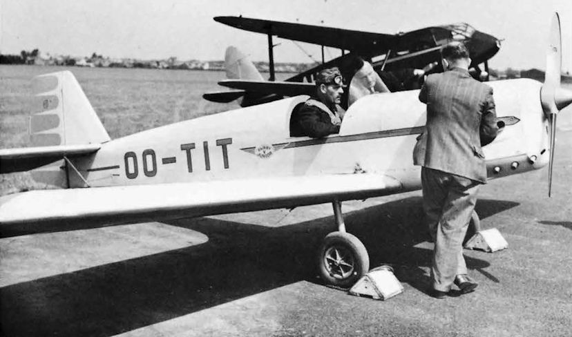 Регистрационный номер: OO-TIT The Walter Mikron powered Tipsy/Fairey Junior OO-TIT, also at White Waltham on June 5th 1948 (see item 11.6.48 below). The pilot on this occasion is Air Chief Marshal Sir Roderick Hill, with F.H. Dixon behind.