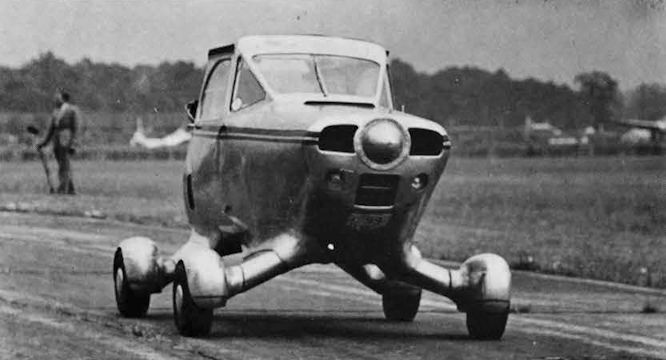 The prototype as a car with the propeller and the wing and tail structure removed. In this form the "registration" appears to be ED 99!