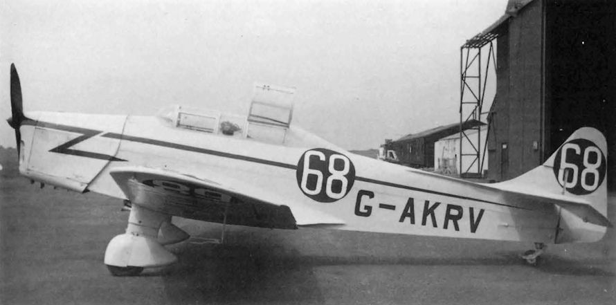 Регистрационный номер: G-AKRV [4] G-AKRV with wood propeller, stub exhausts and racing number 68 as flown by M.R.T. Chandler, was a former Air Transport Auxiliary aircraft.