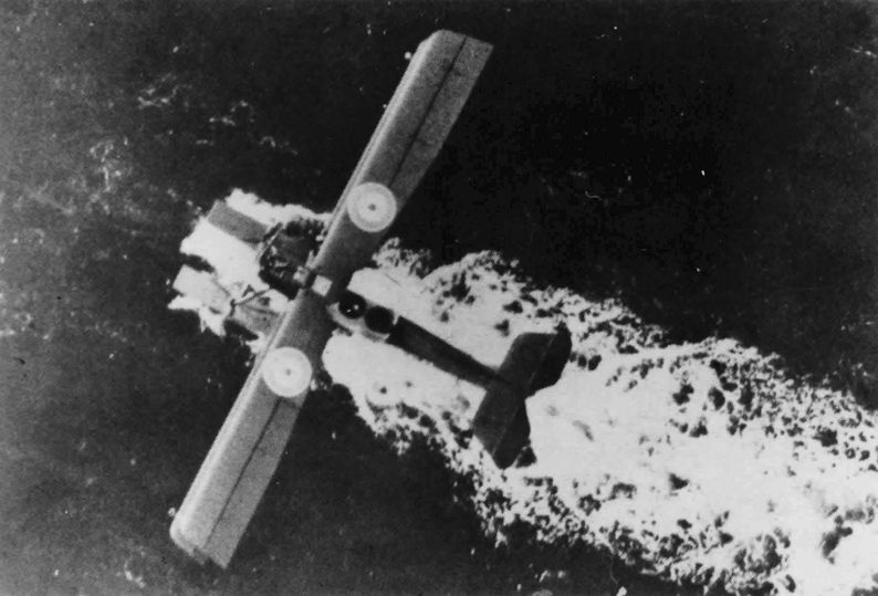 A Short 184 taxing in a choppy sea. The position of the roundels is unusual, possibly being sited to avoid painting on the ailerons.