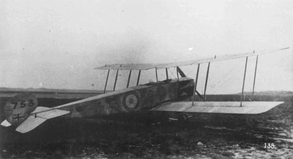 Регистрационный номер: 753 Avro 504 No.753, one of the original versions of that long-lived family, appears to have a form of camouflage.