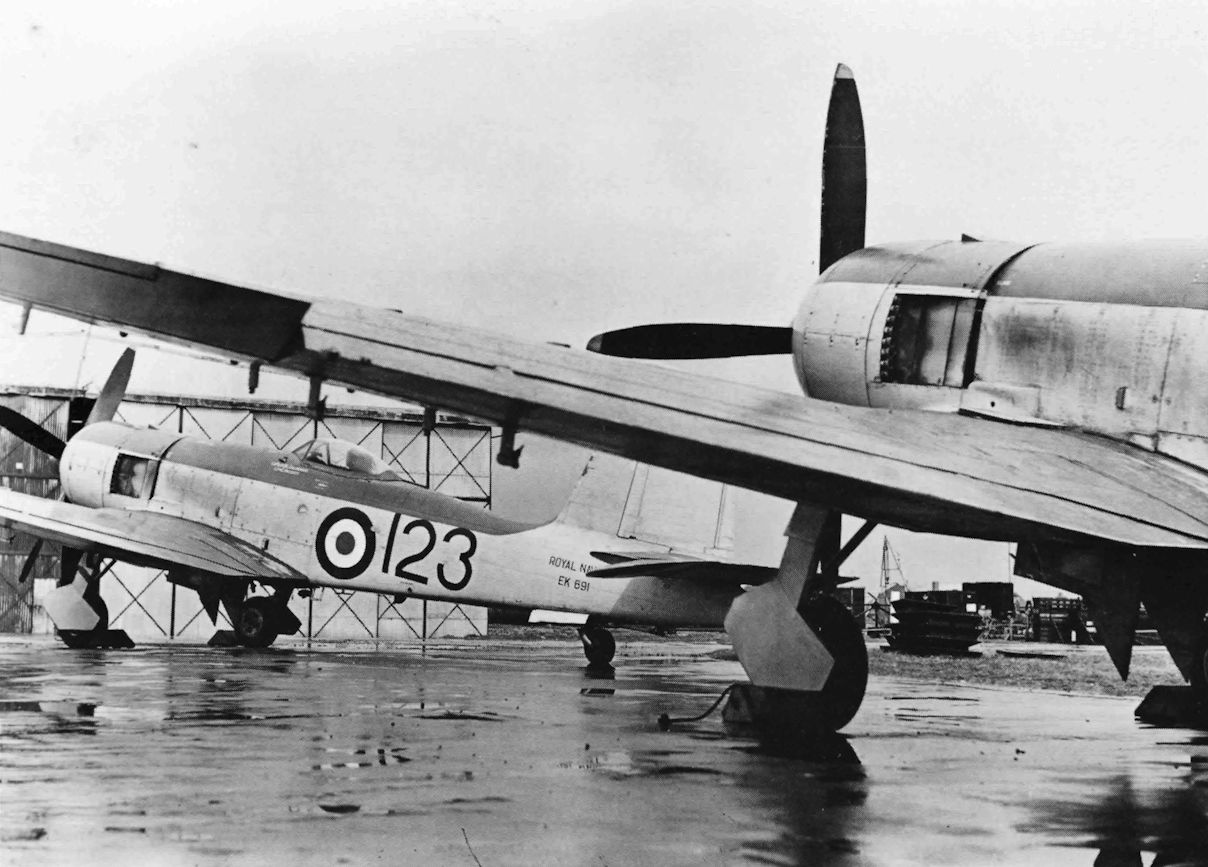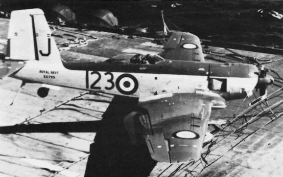 Регистрационный номер: EK691 [2] Seen during an approach to HMS Eagle in 1953, Firebrand T.F. Mk 5 EK691 displays its generous span, large flap area and the horn-balanced elevator of this mark.