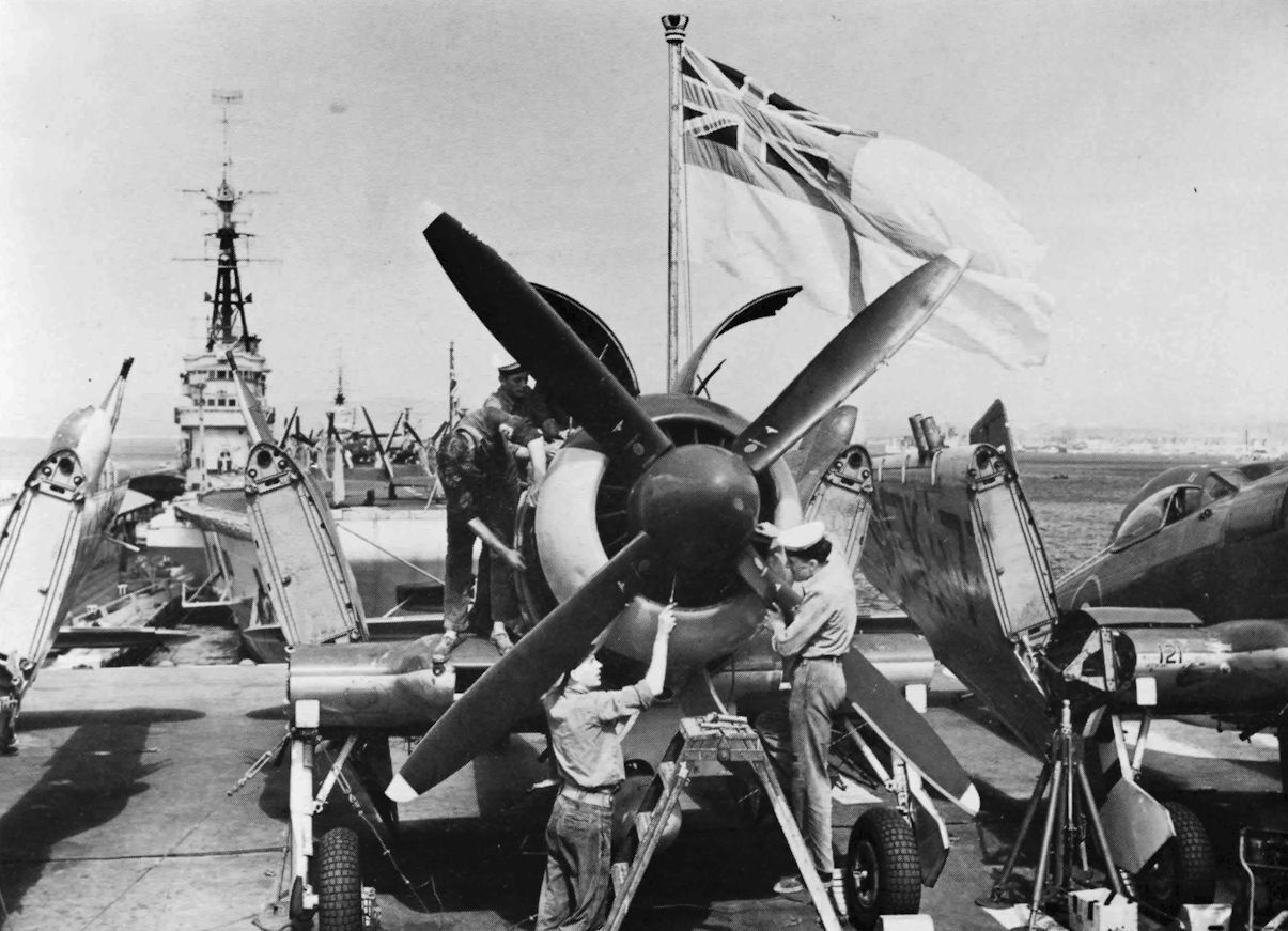 Servicing a Firebrand on the stren of Implacable at Gibraltar