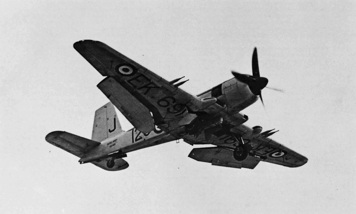 EK691 on approach with everything out and down - except the hookСамолёты на фотографии: Blackburn Firebrand / B-37 - Великобритания - 1942