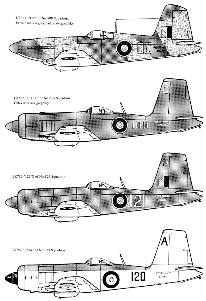 Firebrand TF.5s of 813 Squadron, HMS 'Indomitable', 1951. Note that the example nearest the camera carries a rudder with the old camouflage scheme
