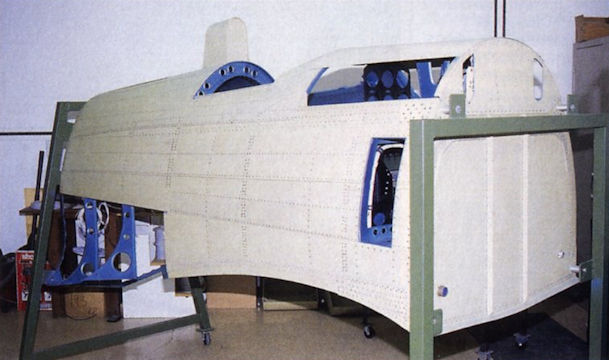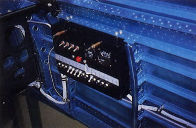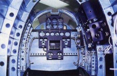 A view down the centre fuselage during equipment test fittings. New instruments will be installed, though they will have period faces. Note the “aotake” lacquer finish applied to the fuselage interior.