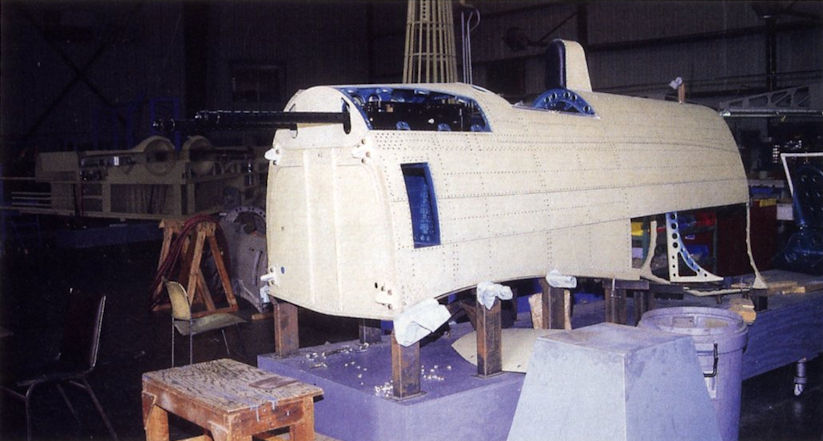 An Oscar fuselage centre-section in the instrument shop of the Texas Airplane Factory at Fort Worth.