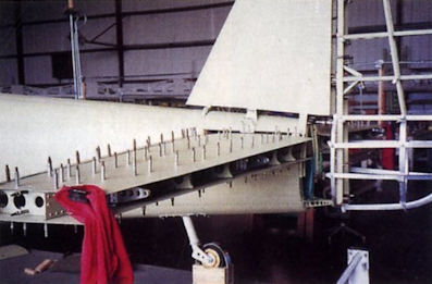 Seen from a similar angle, this is one of the newly constructed wings in its jig.