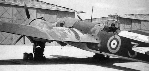 This Bristol Blenheim displaying a rather worn-looking finish carries the identity “3” on its rear fuselage, and its rear top-decking and tailplane upper surface are white.