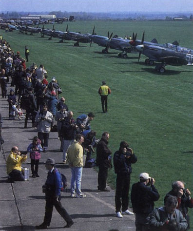 A popular feature developed at Duxford over the past few years is the flightline walk. Here the crowd gets close to the lineup of Spitfires at the type’s anniversary show in May 1998.