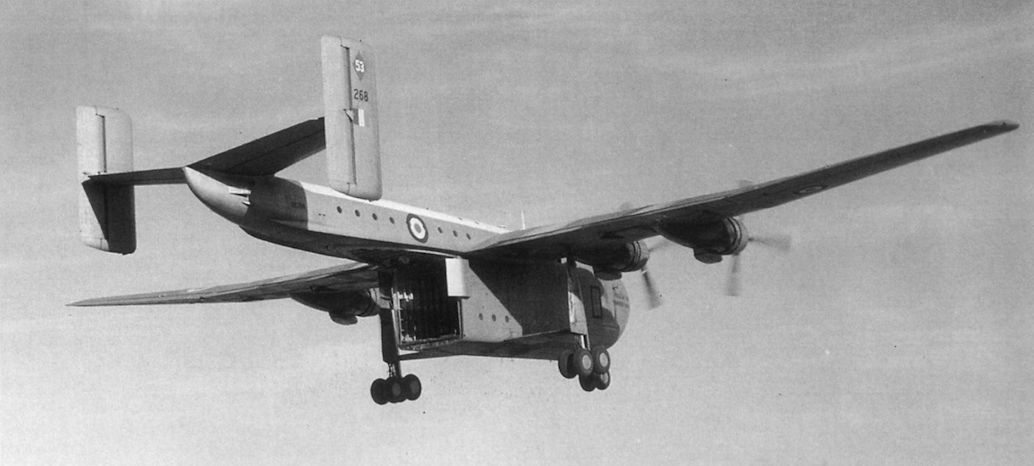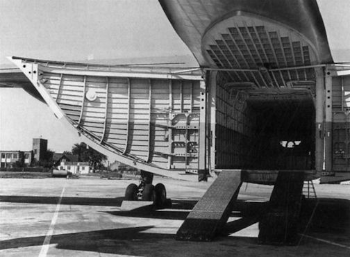 Регистрационный номер: WF320 [4] The Universal Freighter made its first appearance at Farnborough in 1950, where, along with the Brabazon, it dwarfed all the other exhibits. The freight doors on the prototype were downward-opening, and the ramp hydraulically operated by a hand pump.