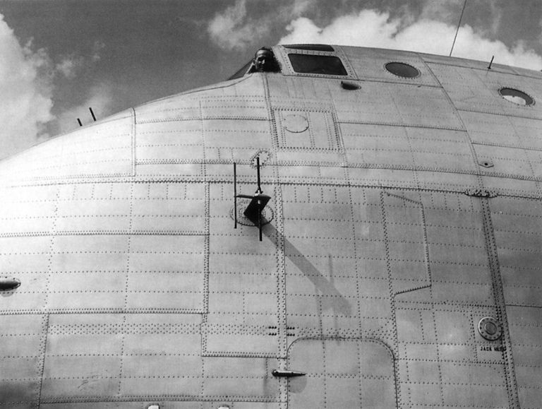 Blackburn chief test pilot Harold “Tim” Wood peers down from the cockpit of the Universal Freighter. On lifting off during the maiden flight of the prototype, Wood reportedly said to his copilot D.G. Brade: “My side’s airborne, how about yours?”Самолёты на фотографии: General Aircraft Universal Freighter / GAL.60 - Великобритания - 1950