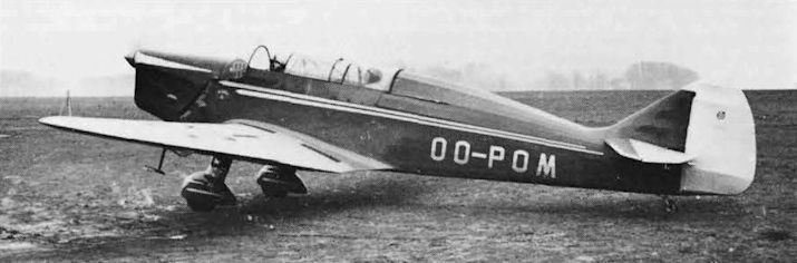 Регистрационный номер: OO-POM [9] Another early photo, taken at Gosselies, showing the original shallow cockpit transparencies with sliding hoods and deeper windscreen sides through which the instrument panel is just visible. On the wing is a two-piece walkway for cockpit access.