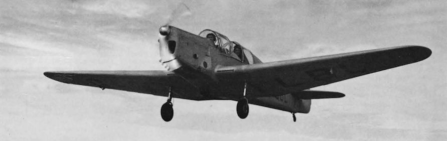 Регистрационный номер: OO-POM [9] The Belgian Tipsy M primary trainer OO-POM, yellow with red nose and spats and black lettering, seen over England in 1948. The type was later built as the Fairey Primer.