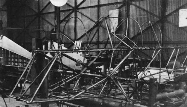 Регистрационный номер: G-6-5, G-ALEW Welded steel fuselage structure of G-ALEW, second and last production Primer, on its jig in November 1948.