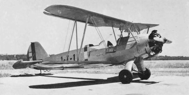 A Focke-Wulf Fw44J of Brazil's Naval School of Training in 1939 with the marks 1-I-1 and MARINA across the rudder stripes of blue/yellow/green, later changed to green/yellow.