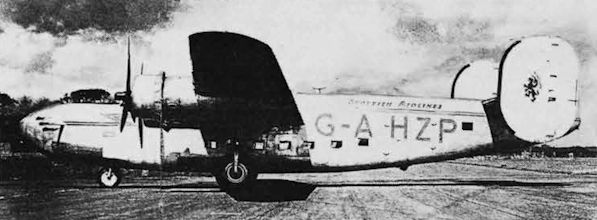Регистрационный номер: G-AHZP, AL516 LB-30 Liberator G-AHZP of Scottish Airlines with its faired nose and fuselage tail-end and with cabin windows, in which form it was used from Co/A 12.8.46 to its crash at Speke 13.10.48.