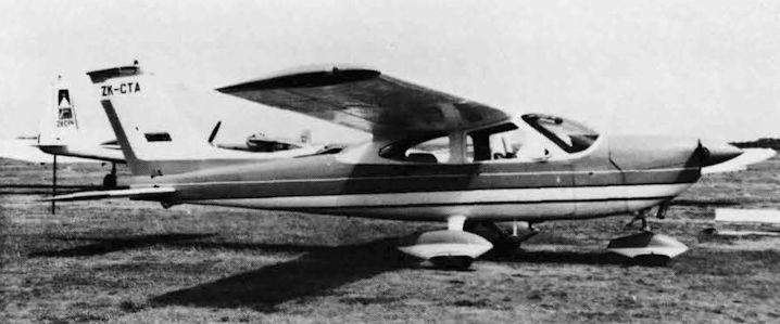 Регистрационный номер: ZK-CPN, ZK-CTA The first Cessna 177 registered in New Zealand was ZK-CTA. The Model 177 was originally designated 172J and was the first of the high-wing series to feature the unstrutted cantilever wing. The de luxe version was known as the Cardinal, ZK-CTC being an example. Visible to the rear is James Aviation Fletcher FU-24 ZK-CPN.