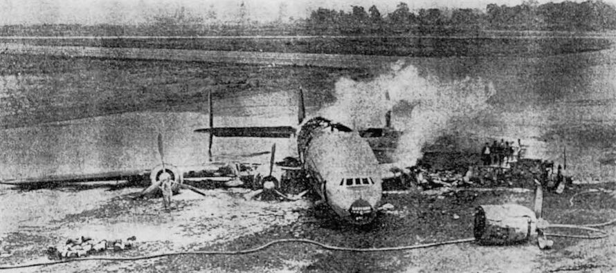 Регистрационный номер: N6214C The smouldering wreckage of Super Constellation N6214C at McChord Air Force Base on 6.9.53. The port engines are completely detached, the fuselage burnt out and the firefighters still in attendance.