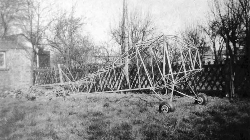 The frame of Fred Brown's Corben Baby Ace in his garden at Walton, Peterborough.