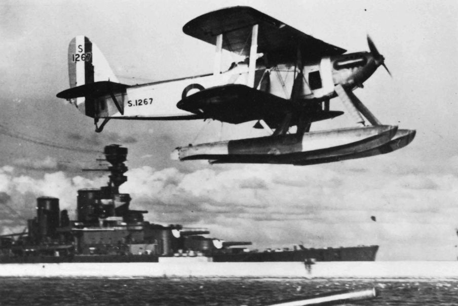 Регистрационный номер: S1267 Ripon S1267 of No. 462 Flight flies past the battlecruiser Renown (before reconstruction) at the mole at Gibraltar