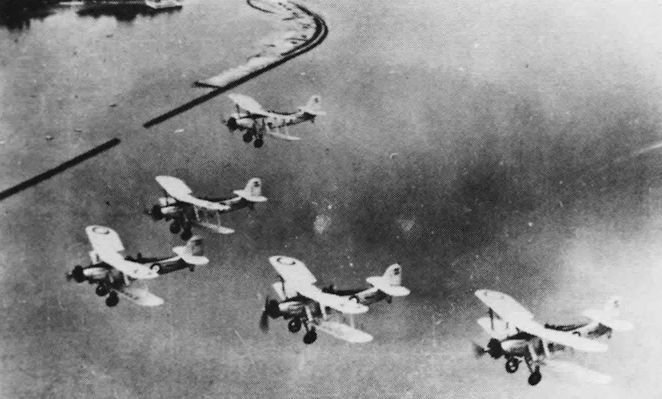 Регистрационный номер: K3549, K3552 Nine Baffins of No. 812 Squadron formate over Malta, April 1935