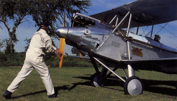 Регистрационный номер: G-EBUG [9], NC7083 [9], VH-UFZ [9] Just as in 1928, the Avian’s engine was not equipped with an electric starter - so human musclepower was required for every start on the 23-city route of the journey