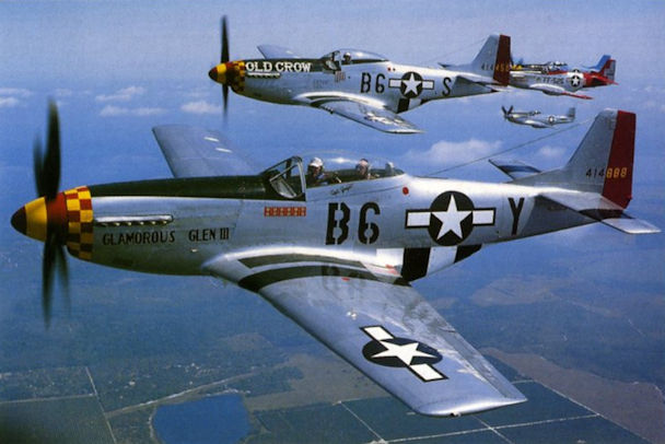 Регистрационный номер: FF-525, N551CB Mustang N551CB, which was destroyed on September 6, 2001. It is seen here being flown by Chuck Yeager over Kissimmee, Florida, in formation with four other P-51s on April 9, 1999.