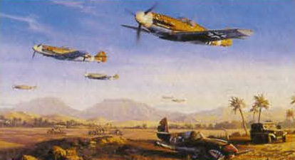 Самолёты на фотографии: Curtiss P-40D Kittyhawk / Warhawk - США - 1941Messerschmitt Bf.109F - Германия - 1940