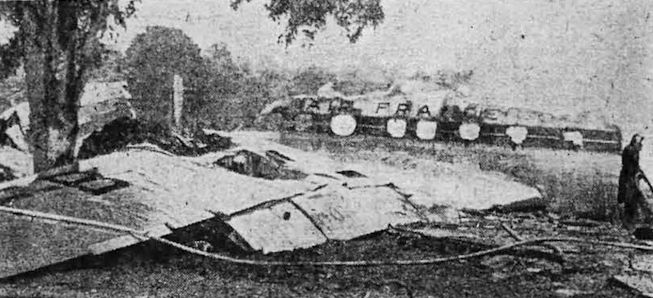 Регистрационный номер: F-BGNA The original caption reads: "Somehow 37 survived the crash of this Air France Constellation at Preston, Conn. The airliner, flying from Paris to Mexico City via New York crashed during a rainstorm and landed in flames on an isolated farm. The wing of the plane finally ended up resting against the tree."