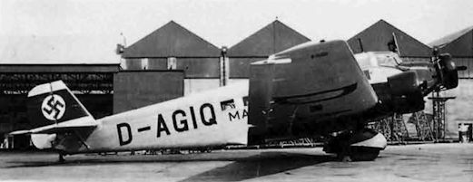 Регистрационный номер: D-AGIQ Junkers Ju 52/3m D-AGIQ c/n 5272 "Martin Zander" was a Croydon visitor on 2.4.38.