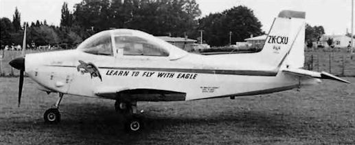 Регистрационный номер: ZK-CXU Airtourer 115 ZK-CXU with prominent "Learn to fly with Eagle" inscription at Hamilton on 28.3.72. Less prominent is the name "Miss Jacy" on the cowling and "The smallest aircraft ever to make global flight" on the lower fuselage - this being the machine in which Cliff Tait flew 30,000 miles in 216 hours flying time between 12.5.69 and 1.8.69. It was not a complete circumnavigation however as Soviet intransigence forced him to ship the plane from Yokohama to Seattle.