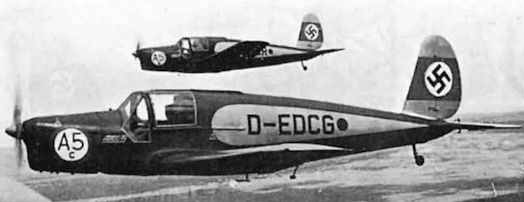 Altitude - 5.7.39 Gotha Go.150 D-ESPL (two 55hp Zundapp 9-092); 8048 m by Dr Fritz Platz over Gotha airfield. But for the outbreak of WW2, the Go 150 would have probably been successful as a low-powered twin for private owners, its two 50 hp Zundapp Z-9 4-cyl inverted in-line engines providing economical operation with single-engine capability. Production was started and a line-up photo shows 9 aircraft. These were apparently in addition to 2 in early photos which showed D-ERCQ, earliest known registration and presumably the prototype, and D-ESPL, the aircraft in which Dr.Platz broke the altitude record in its class only 2 months before the British declaration of war on 3 Sept 1939. Wing span was 11.8 m (38 ft 9 in.), Loaded weight 825 kg (1819 lb).Самолёты на фотографии: Gotha Go.150 - Германия - 1936