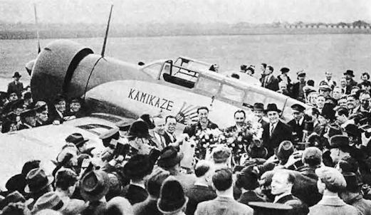Регистрационный номер: J-BAAI Iinuma & Tsukagoshi shown on their record-breaking arrival at Croydon in Mitsubishi Karigane I J-BAAI on April 9th 1937.