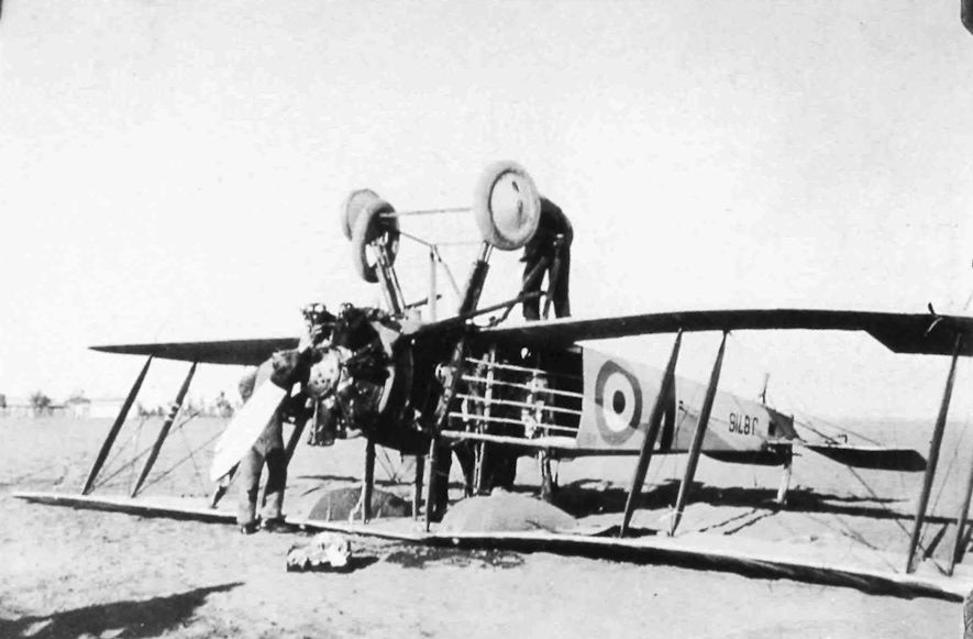 Регистрационный номер: J8097 Westland-built D.H.9A loses its undercarriage in a heavy landing while serving with No.4 Flying Training School at Abu Sueir, Egypt.