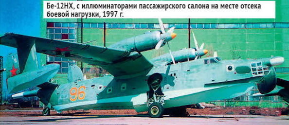 Бе-12НХ на заводской стоянке в Таганроге, с иллюминаторами пассажирского салона на месте отсека боевой нагрузки, 1997г.