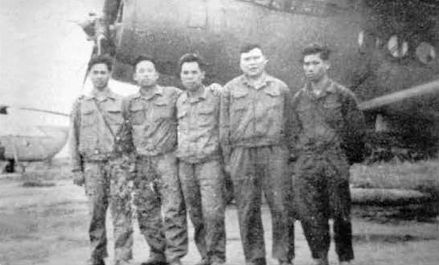 Экипаж одного из вооруженных 57-мм блоками НАР УБ-16 Ан-2 из 919-го ТРАП ВВС ДРВ на фоне своего самолета. Аэродром Гиа Лам (Залам ???), январь-март 1968 г.