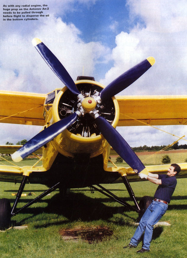 ANTONOV AN-2. Data: Antonov AN-2. Power: ASh-21 seven-cylinder radial engine. Accommodation: unknown. Dimensions (approx.): span (upper) 46 ft. 8 in.; (lower) 35 ft.; length 37 ft. 2 in. Weights and performance: not available.