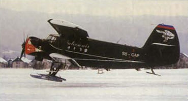 Unusual camouflage on a Croatian-operated An-2 used for paratroop training at Vrsar in Istra. On the nose is the Black Martin badge, the symbol of Slavonia.