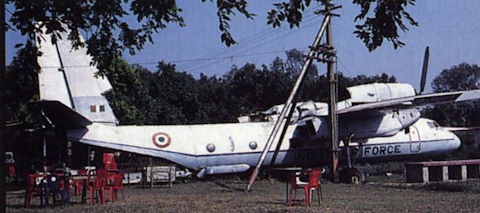 Ан-32, подломивший переднюю "ногу" на грунтовом аэродроме в Руанде. Июнь 2001г.